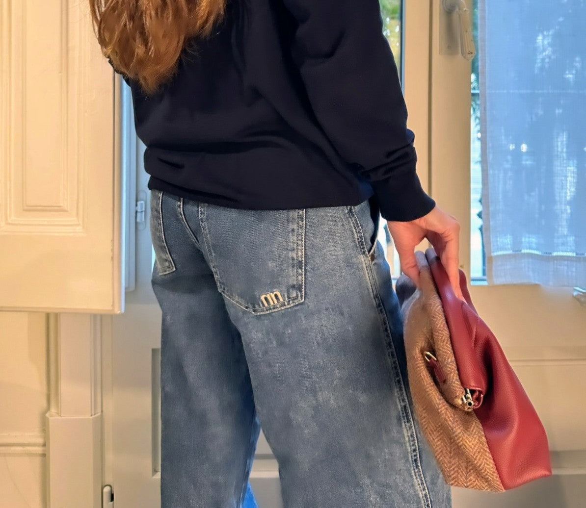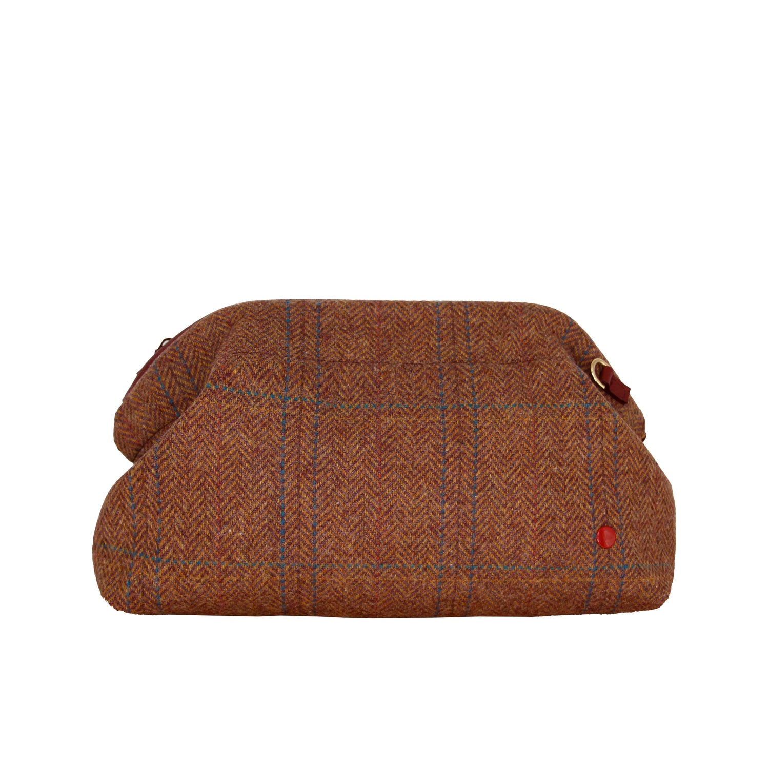 Bolso estilo clutch. Hecho de piel, y espiga. Con una bandolera para poder colgar el bolso.